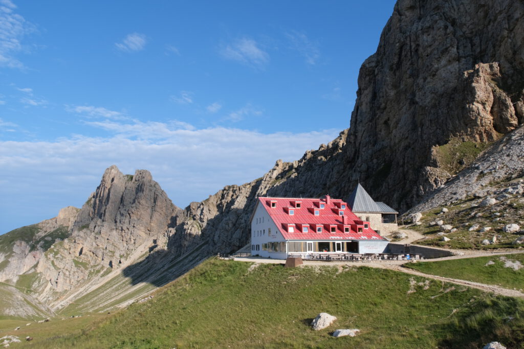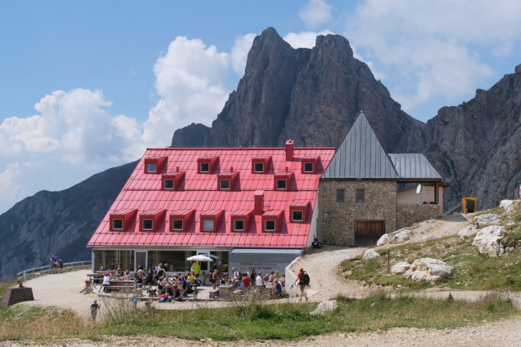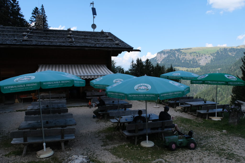 - Vom Tierser Alpl zur Plattkofelhütte dann auf den Plattkofel und noch zwei Bierpausen auf zwei anderen Hütten.