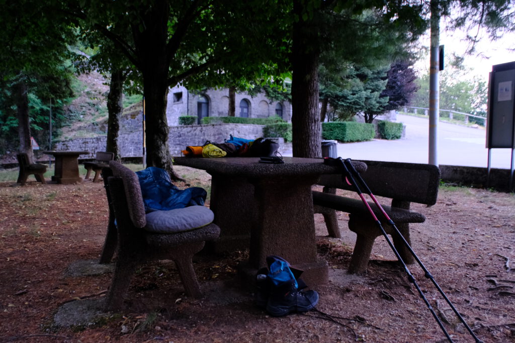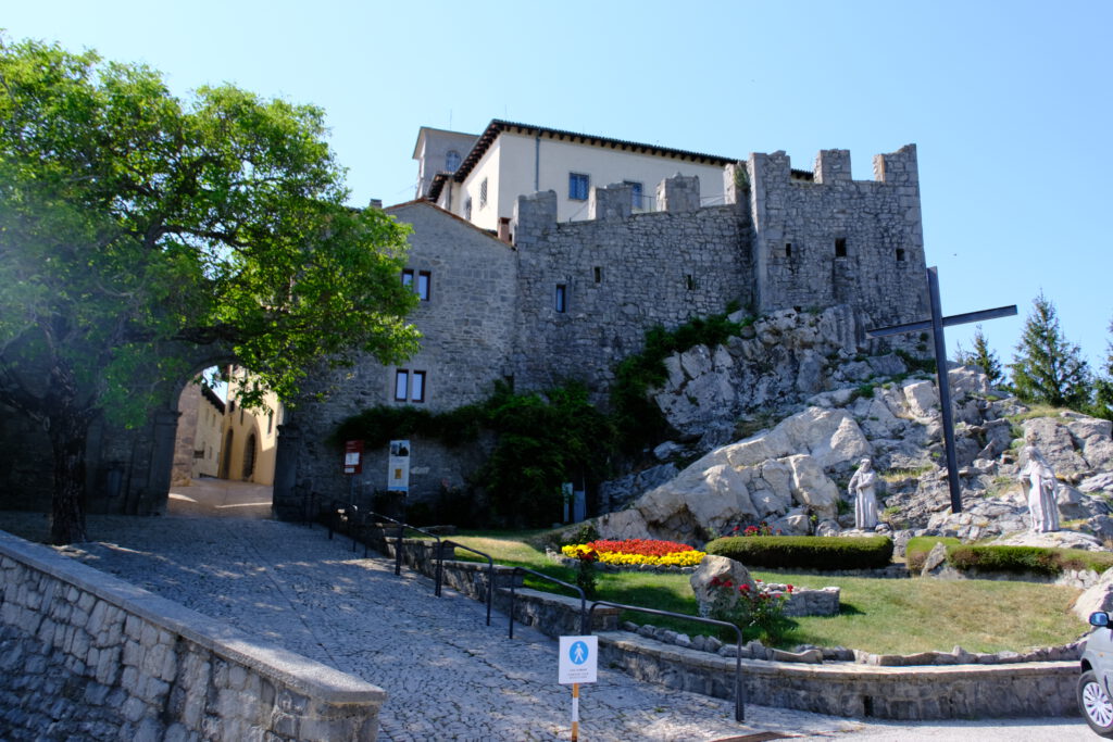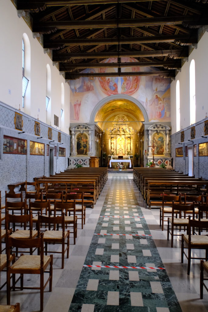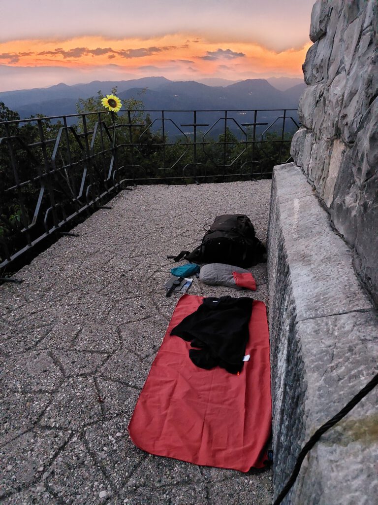 Castelmonte aus der Ferne.Castelmonte von nahem.Castelmonte von innen aber leider hatte das Albergho im hintergrund Montags für übernachtungsgäste Ruhetag, deswegen musste ich im freien übernachten.Die Kirche von innen. Erster Veruch bis zum Regen.Hierhin bin ich Nachts umgezogen, unter den großen Bäumen ist es trocken geblieben.