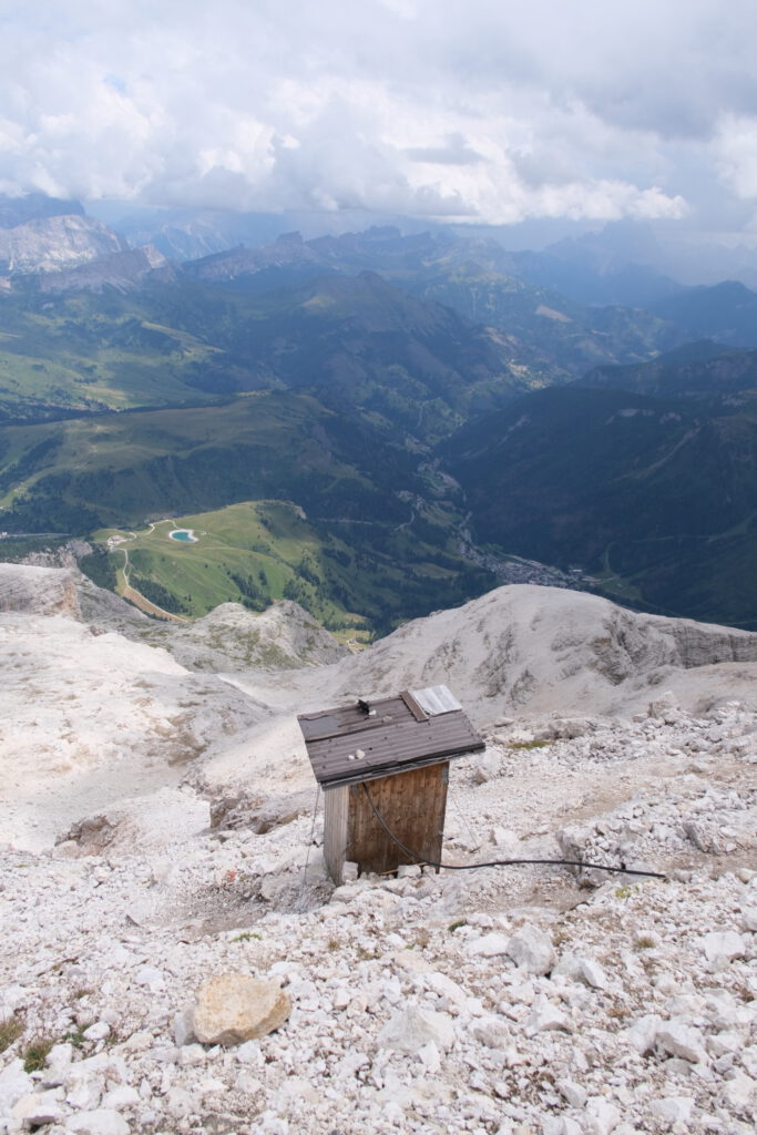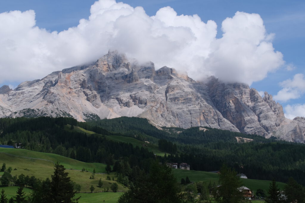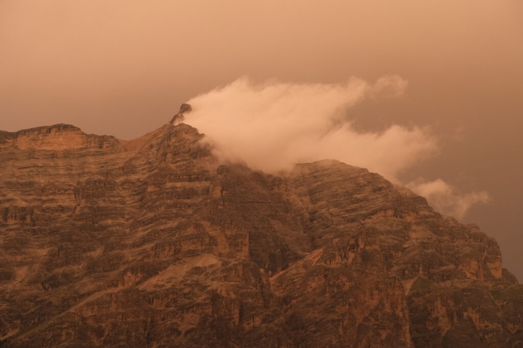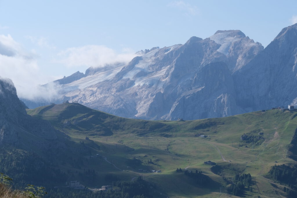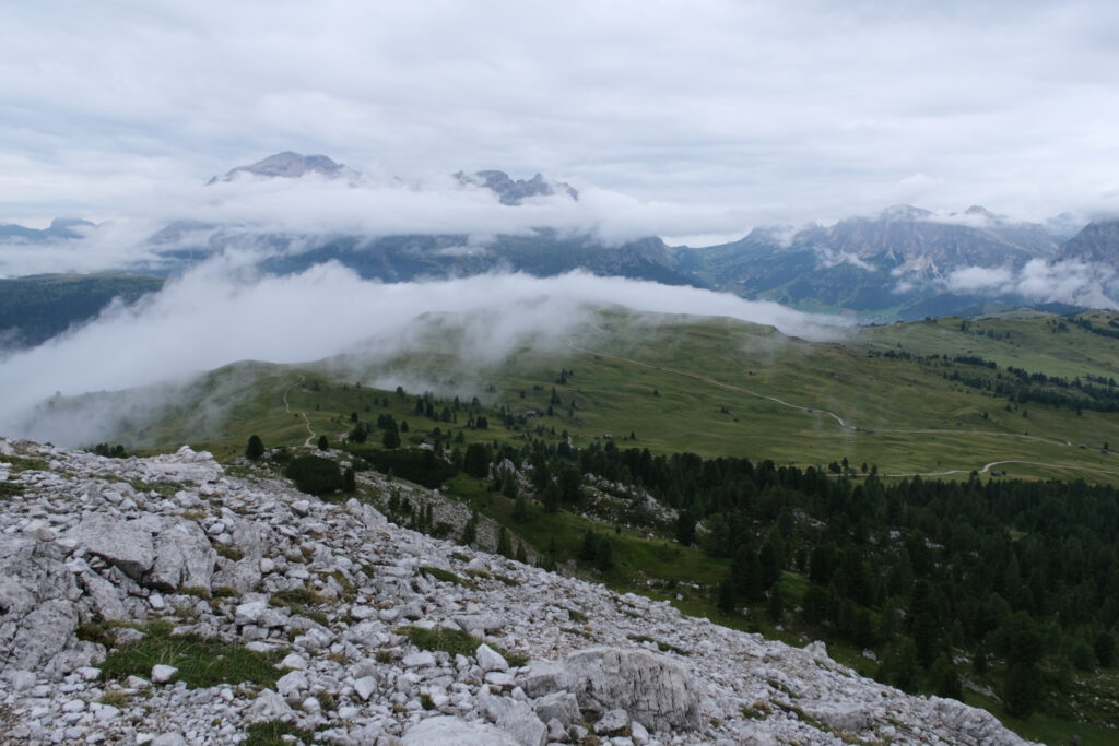 Piz Boè in den Wolken.
