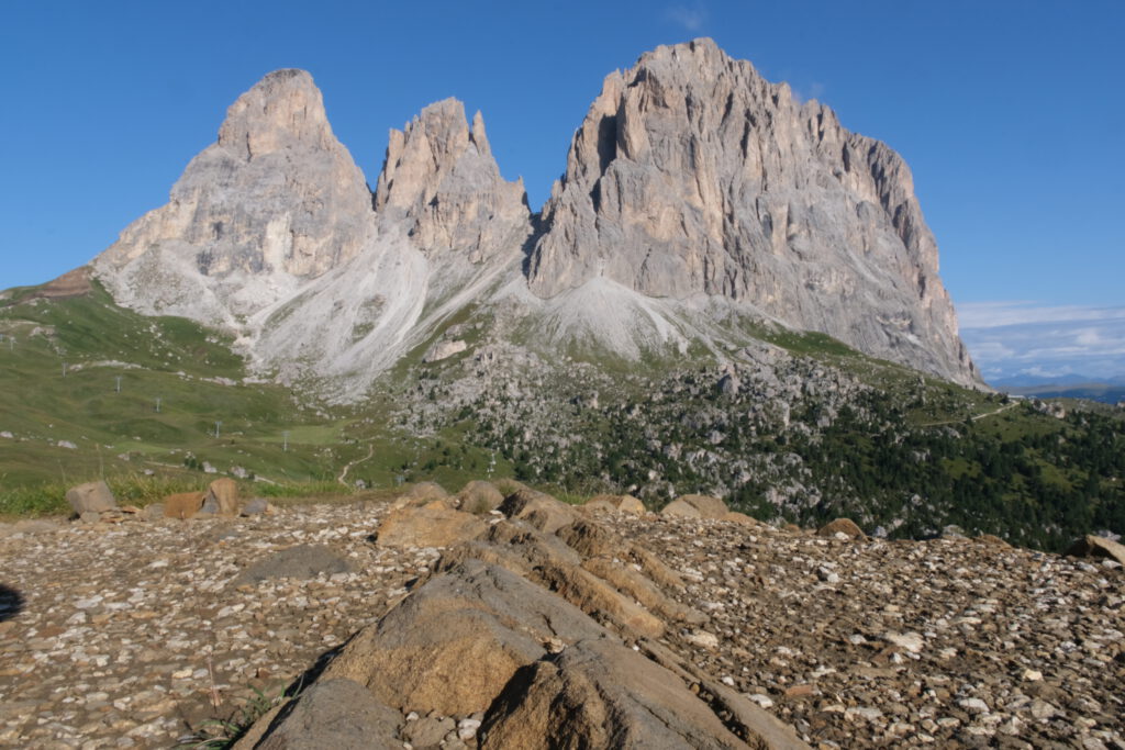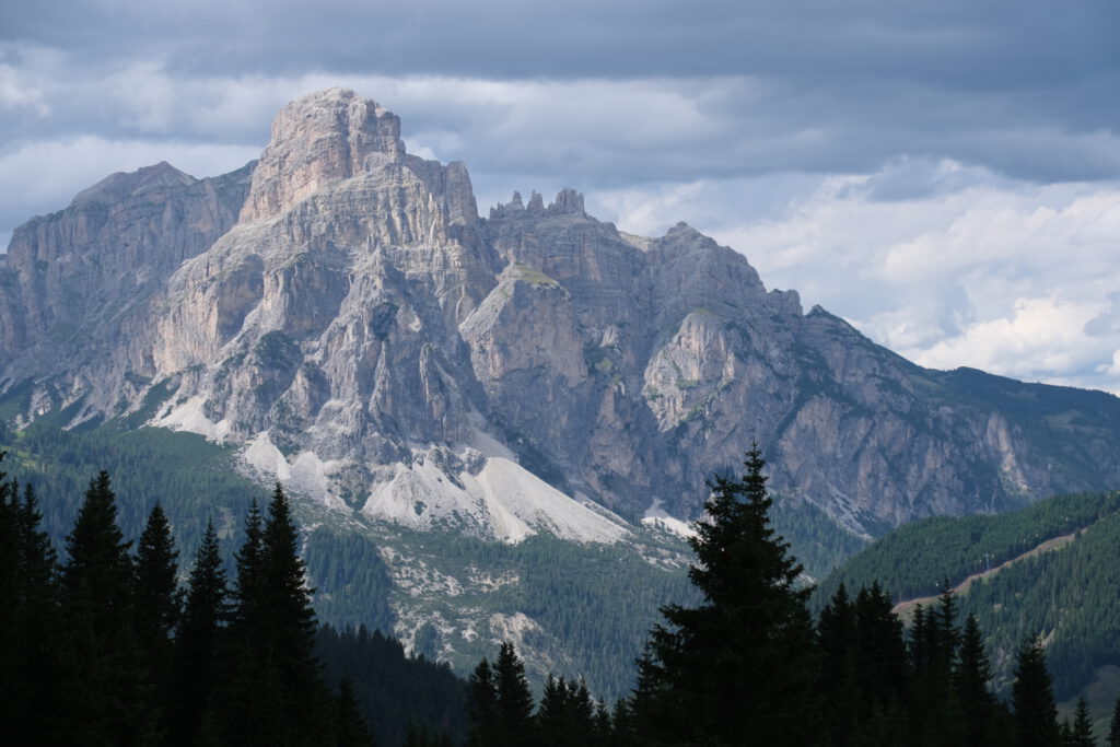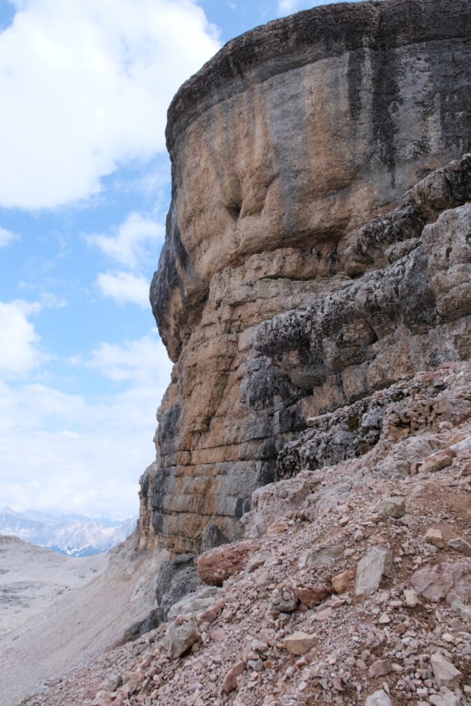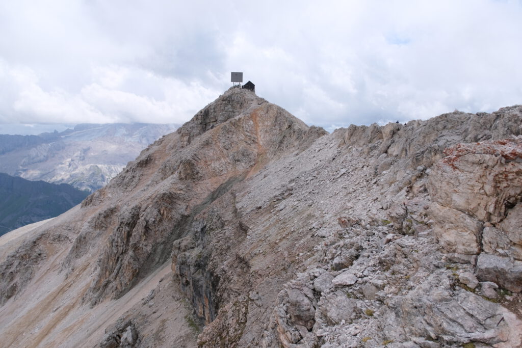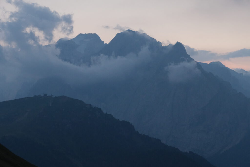 Piz Boè in den Wolken.