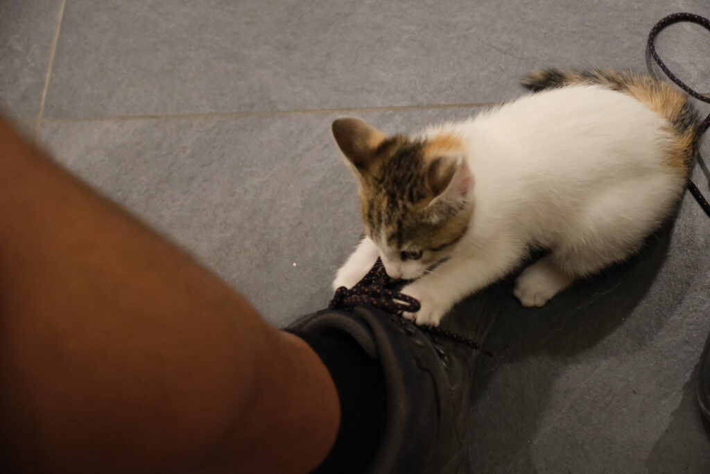 Das Kätzchen hätte gerne meine Schnürsenkel behalten.